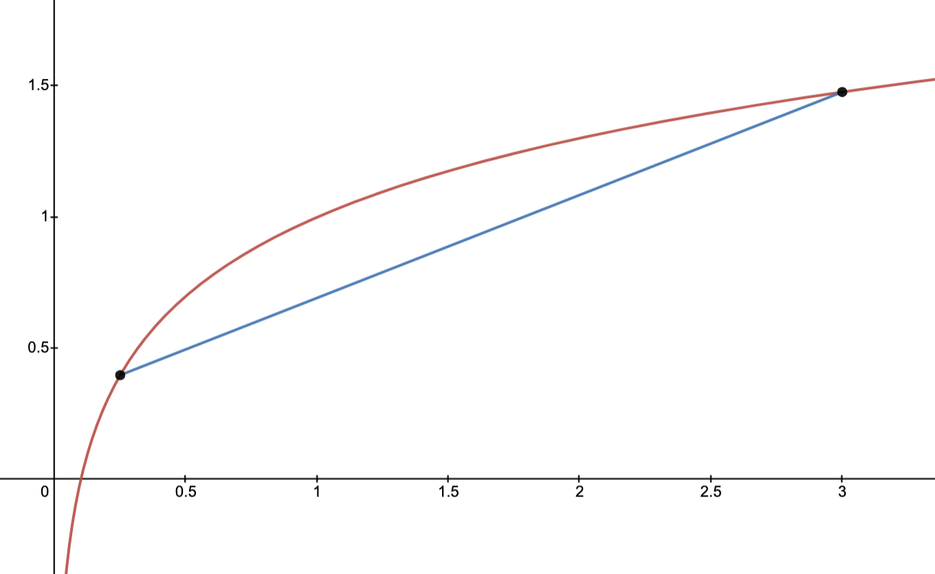 is better approximated by the a “logarithmic barrier” of the form than any linear function.