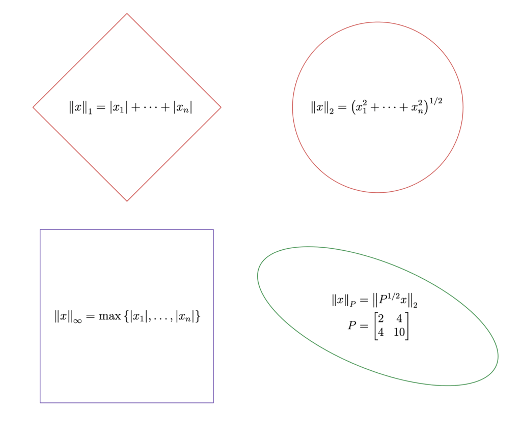If , is the identity matrix, and is an ellipsoid, then the solution is the point in the ellipsoid closest to the point .